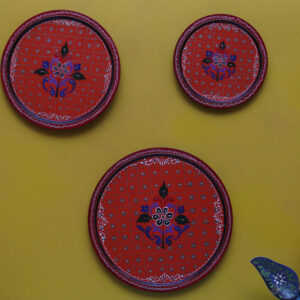Red Wooden Painted Wall Plates – Set of
