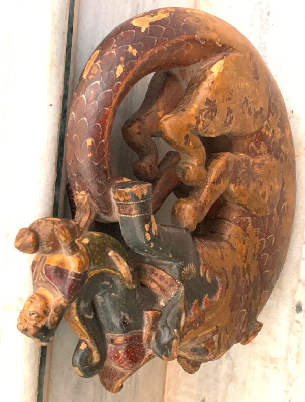 Be the first to review “Antique Wooden Lion Elephant Round Frame”
