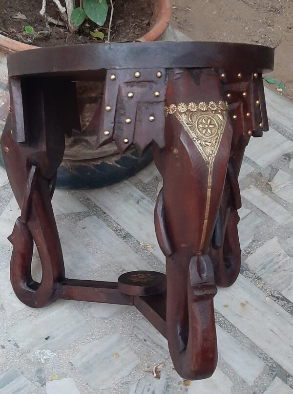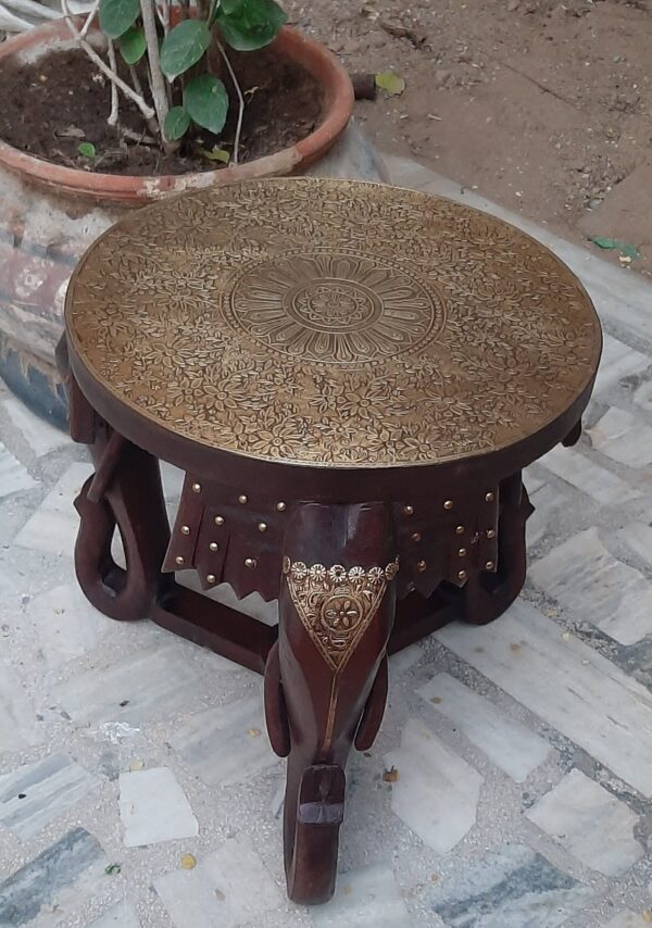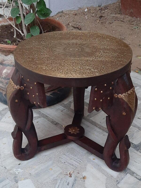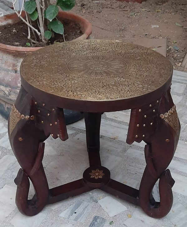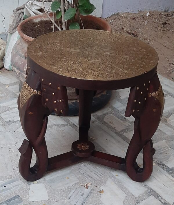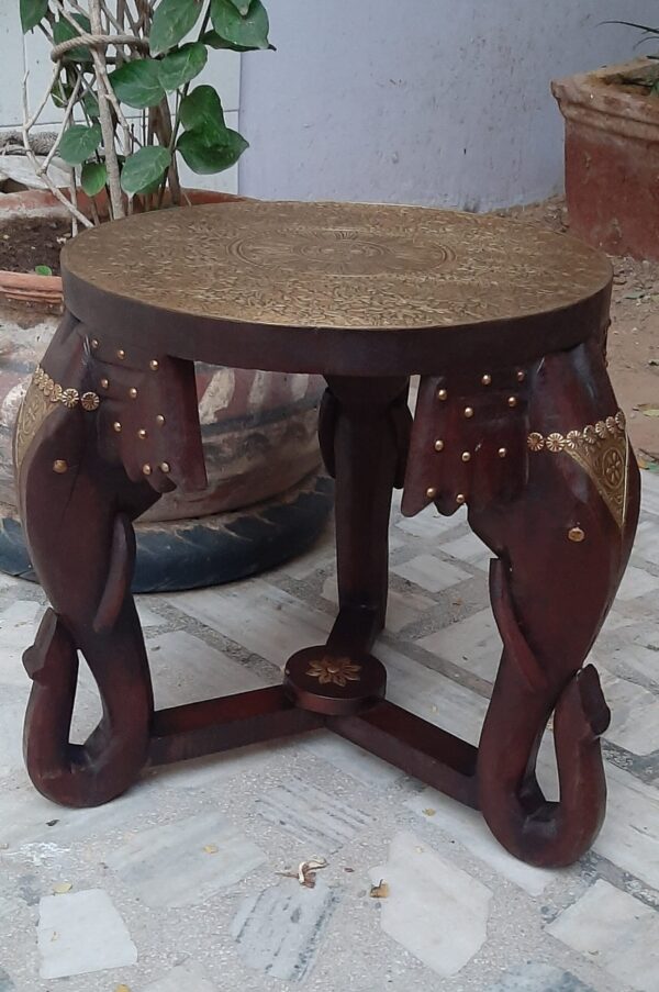 This is a handmade wooden rajasthani home decor polished brass fitting bedside table.