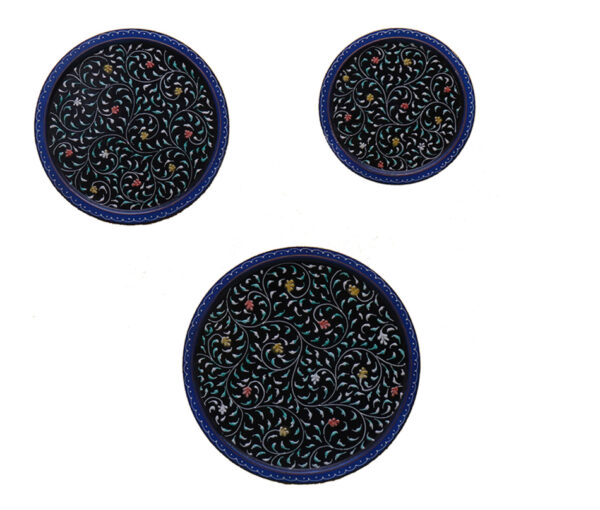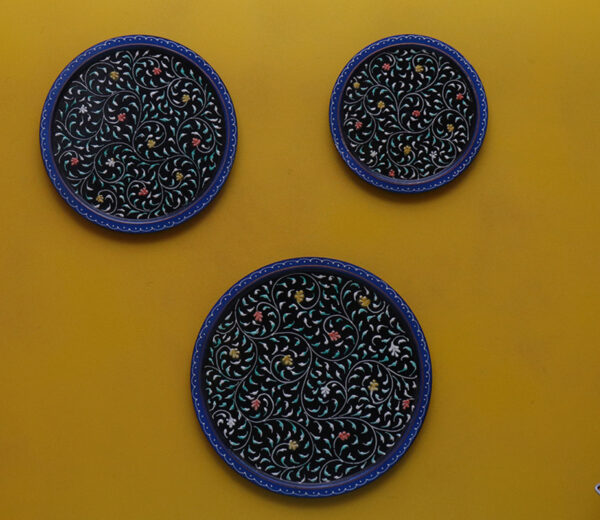 Be the first to review “Black and Blue Wooden Painted Wall Plates – Set of 3”