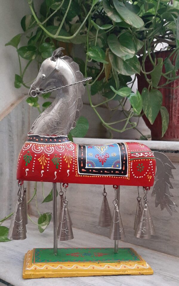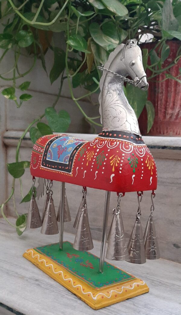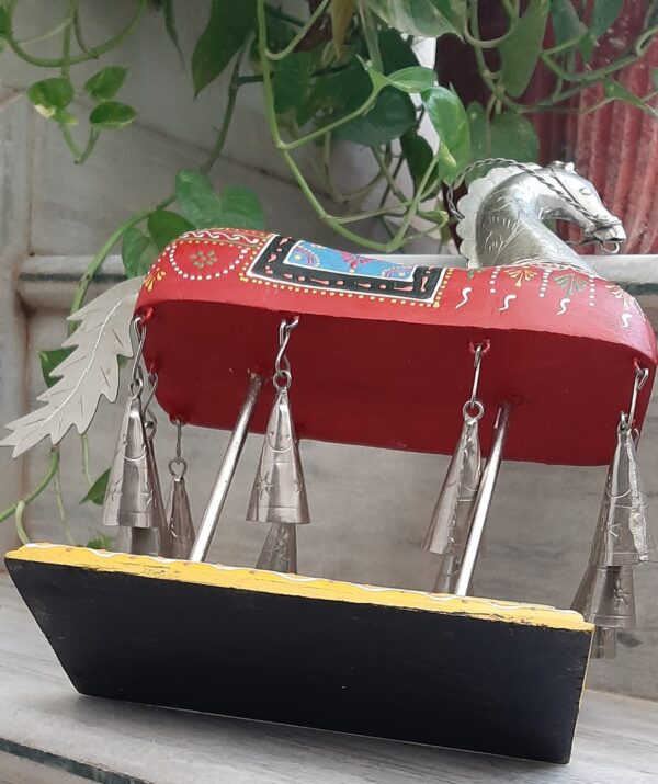 This is a handmade vintage style wooden iron metal horse statue with bells beautifully made by the able craftsman of India. Each piece is handmade and it takes a lot of time and effort to make one piece.