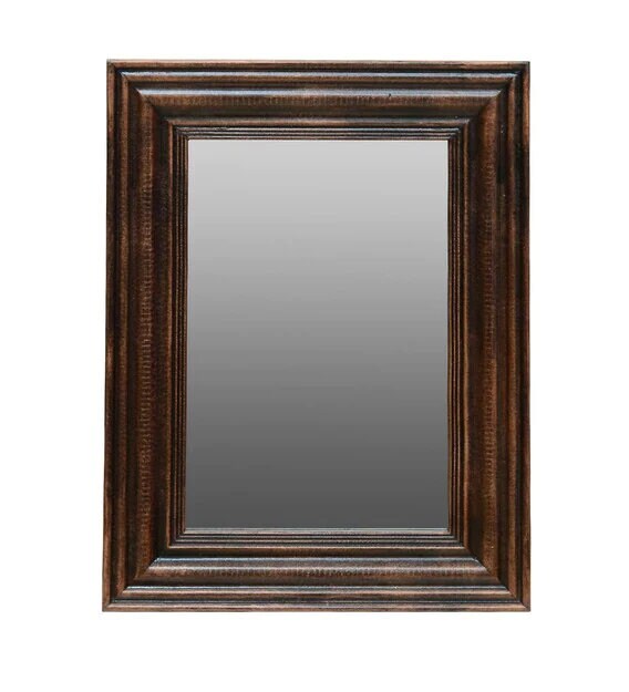 This is a handmade vintage style wooden carved mirror with uneven finish beautifully made by the able craftsman of India. Each piece is handmade and it takes a lot of time and effort to make one piece. This mirror can be fixed or wall hanging.