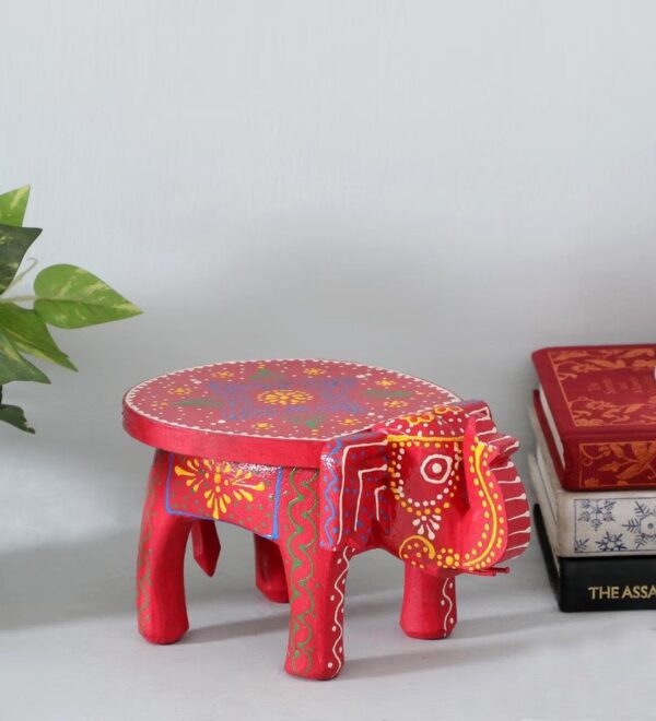 This is a handmade wooden rajasthani home decor elephant shape footstool.