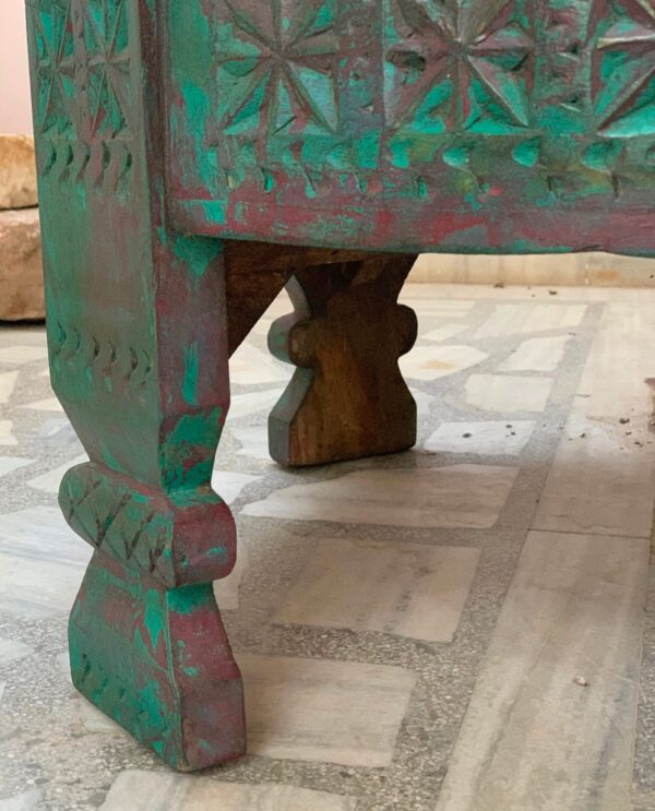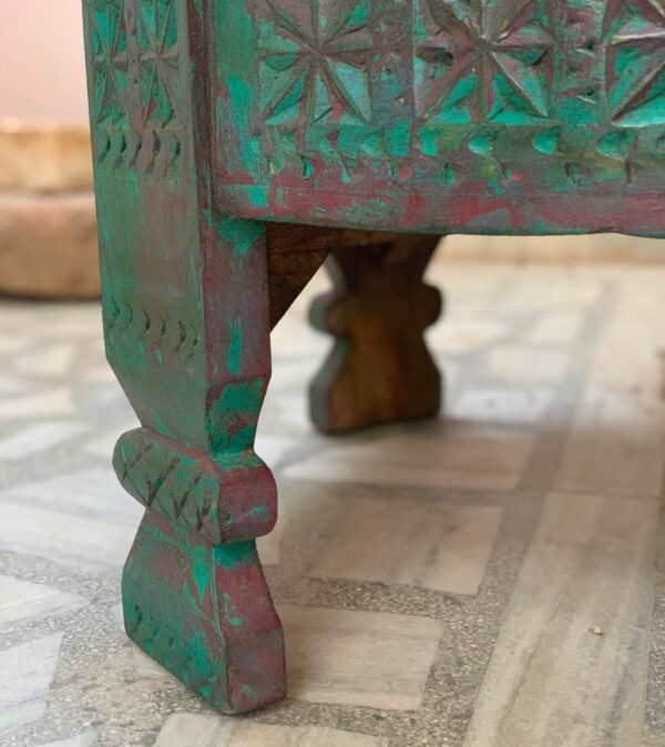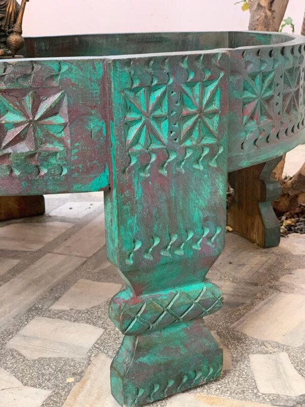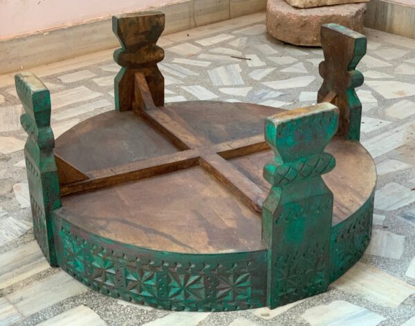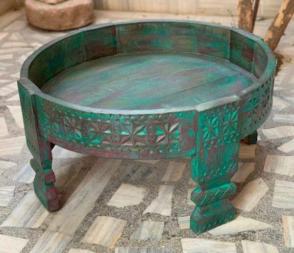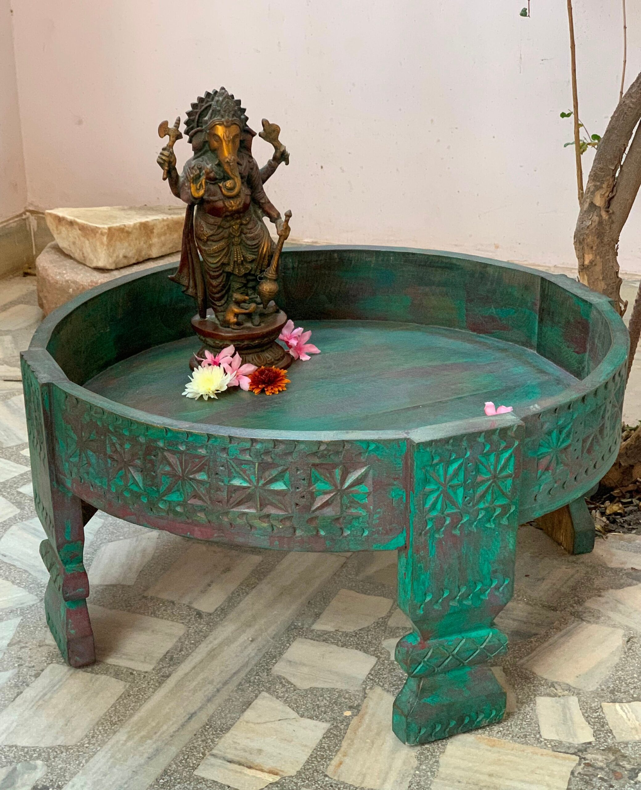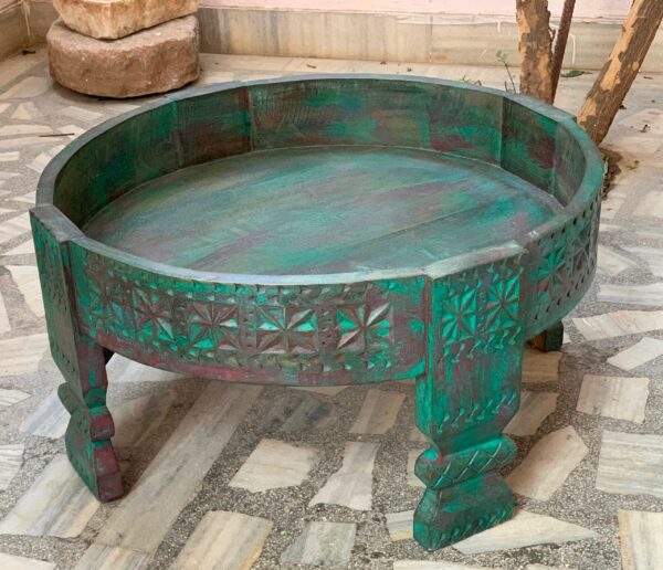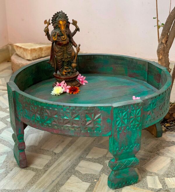 This is a handmade vintage style wooden chakki table beautifully made by the able craftsman of India. Each piece is handmade and it takes a lot of time and effort to make one piece.