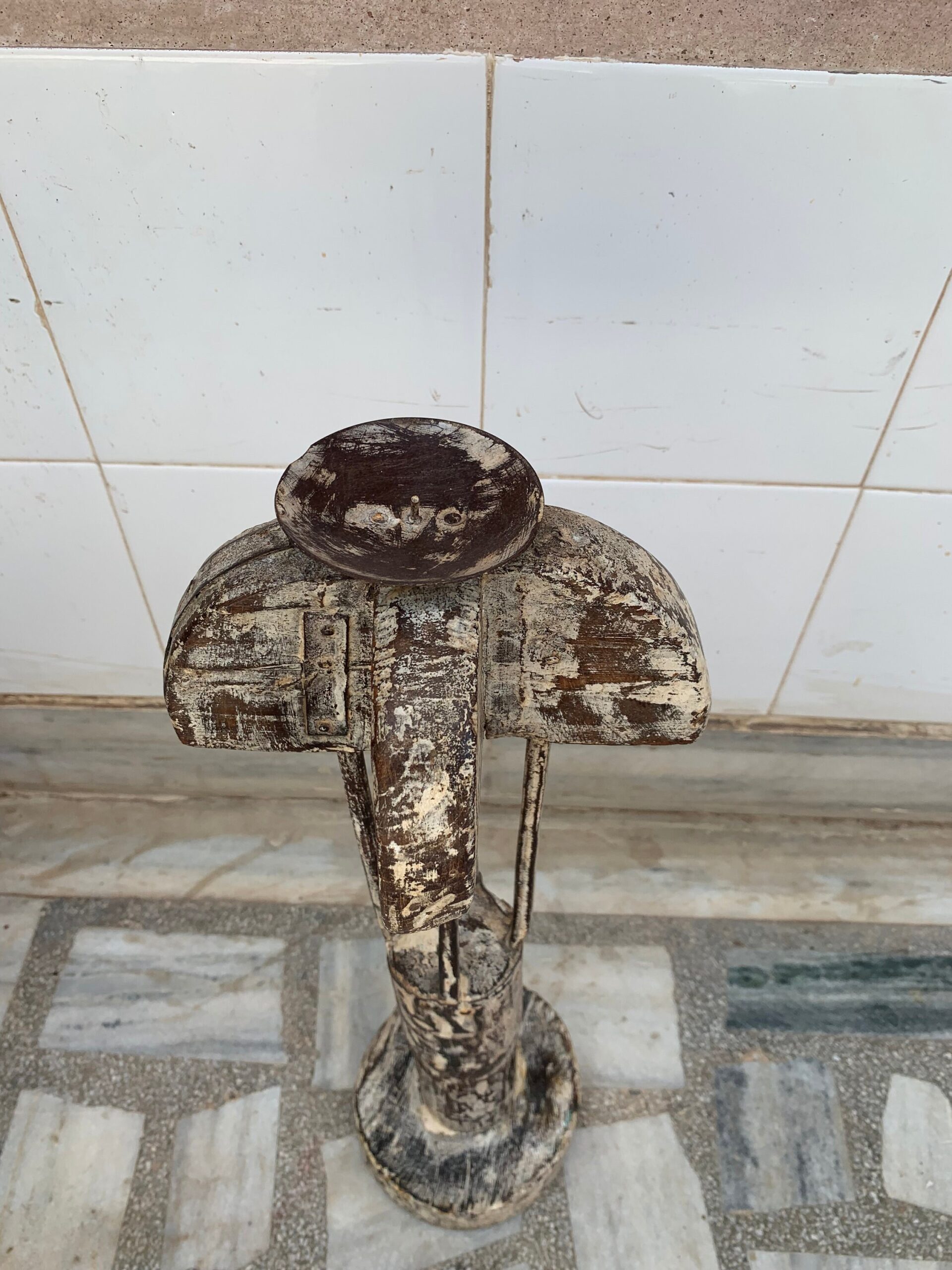 Request you to go thru the pics. thoroughly to avoid any disappointment after purchase. Being very old piece there is slight damage, uneven finish, crack lines and discolors etc..