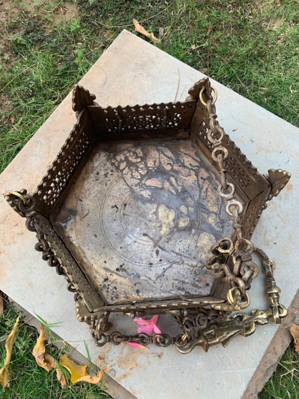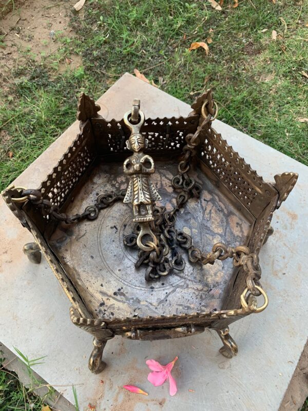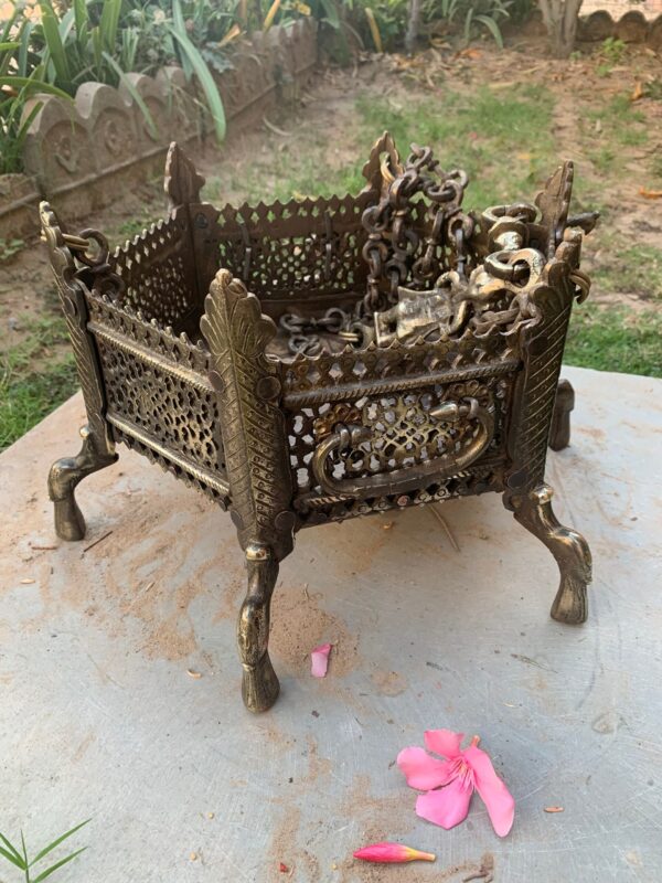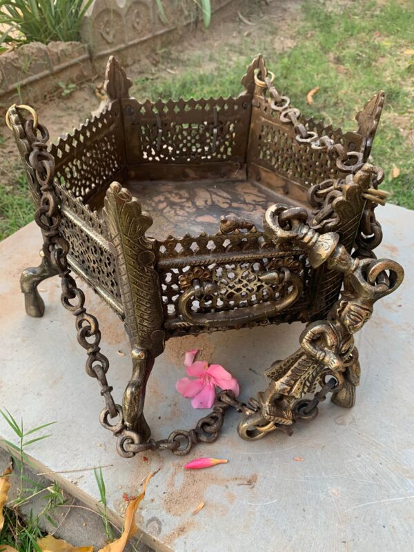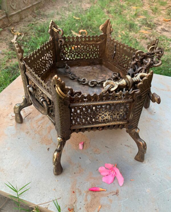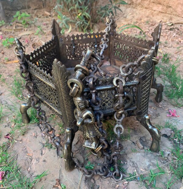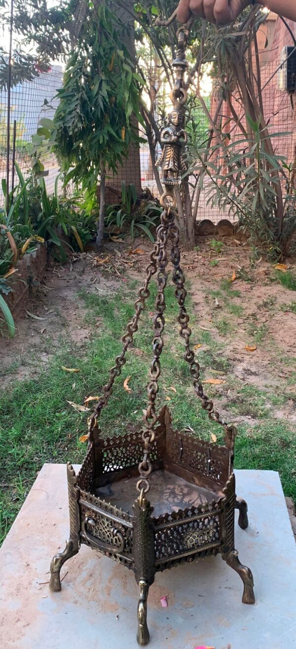 Size: – 34.5″ (h) upper mouth:- 12″ , bottom:- 15″ approx (from legs to chain)