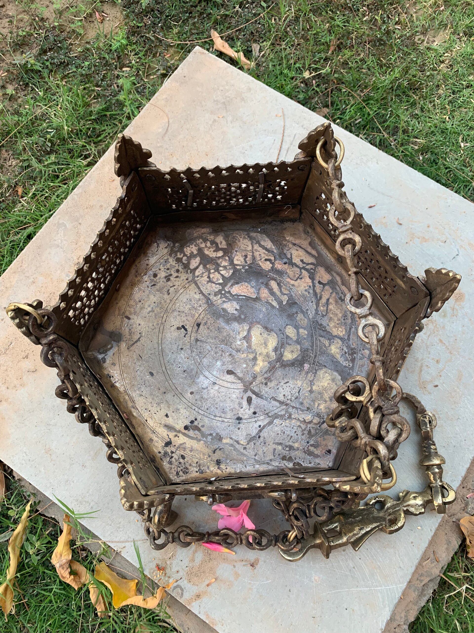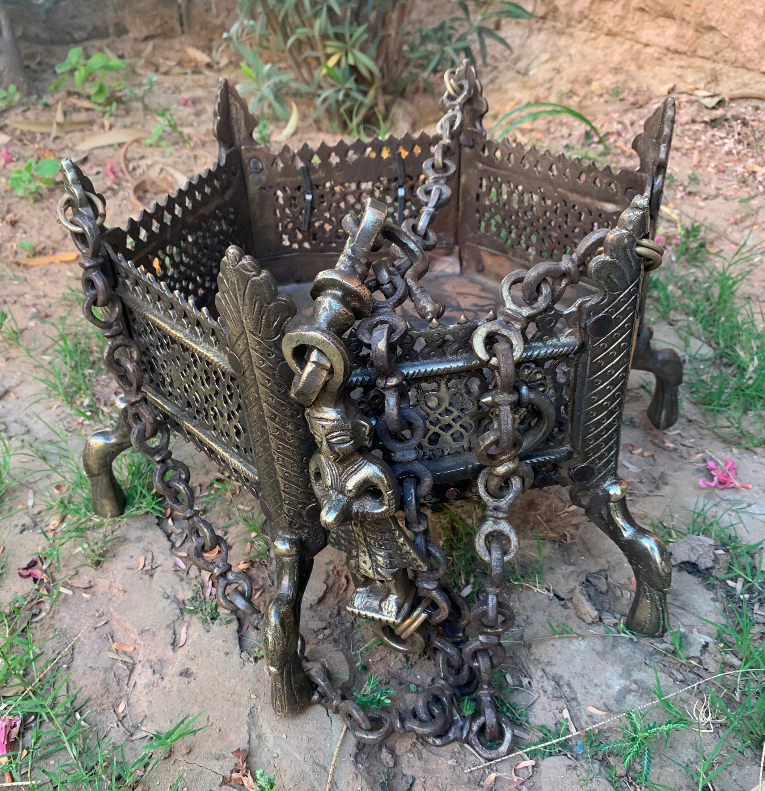 This is a handmade brass brazier/fire pit with handles and chain, you can also use this as incense burner, which is always a masterpiece to decorate your boring living area. It will be a unique addition to your home decor. Best way to gift your loved ones on any occasion/festivals.