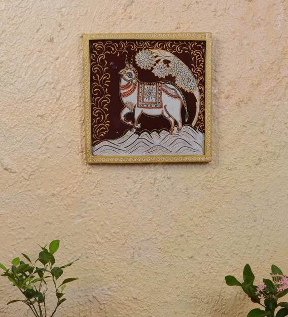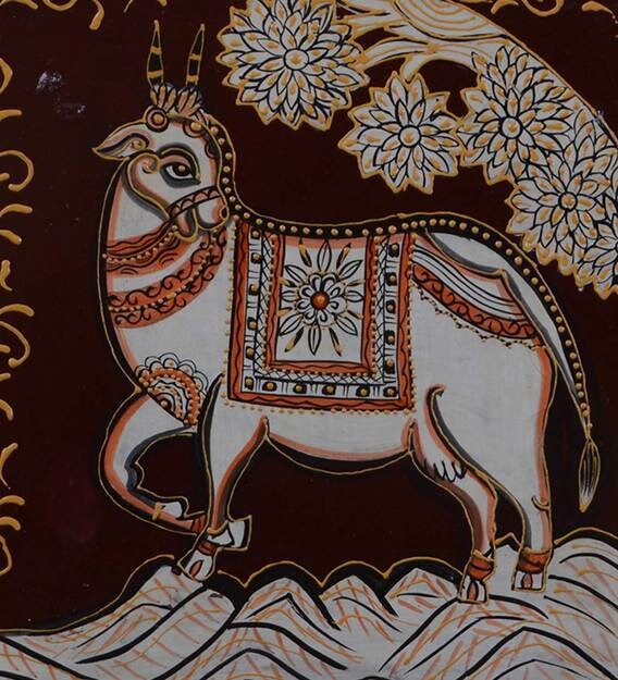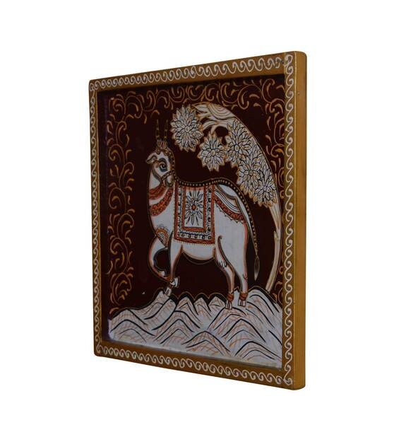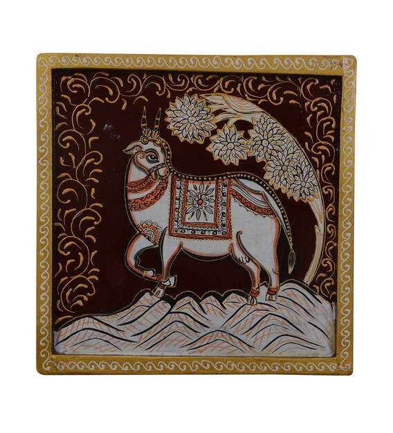 Antique Wooden Painted Cow Animal Wall Hanging Panel,Vintage Indian Wall Decor Window Door Plaque, Wall Panel For Living Room, Bed Head Decor