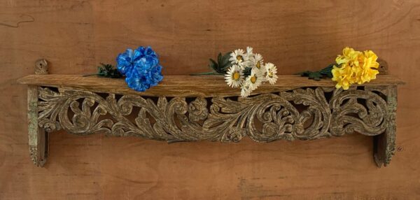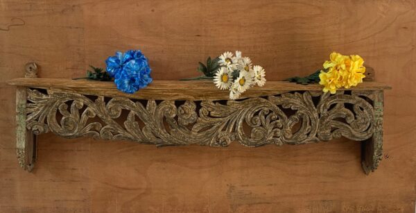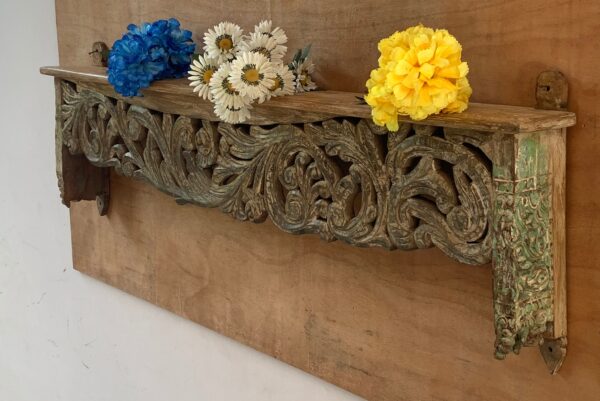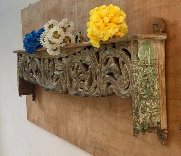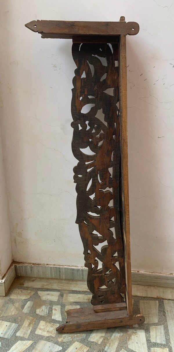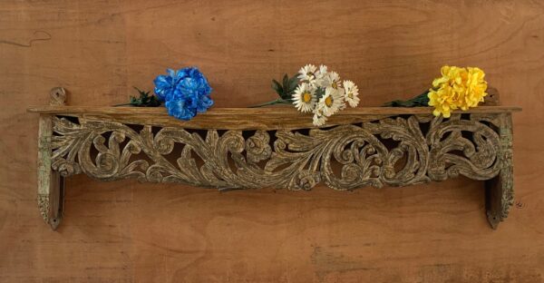 This is a handmade Indian antique wooden beautifully carved wall shelf multipurpose shelving made by the able craftsman of India. Each piece is handmade and it takes a lot of time and effort to make one piece.