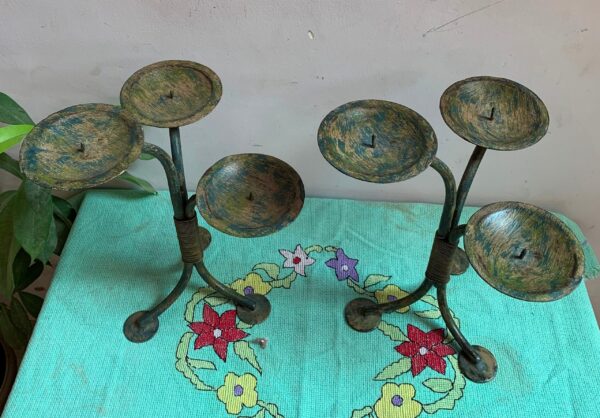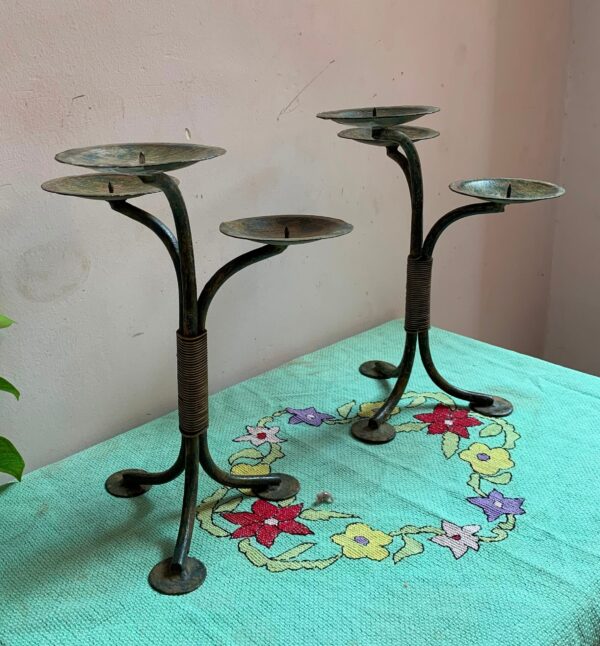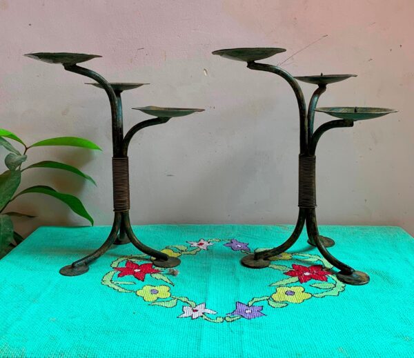 These old iron candle holder pair are an exceptional and rare piece of art, It will be an unique addition to your home decor. Best way to gift your loved ones on any occasion/festivals.